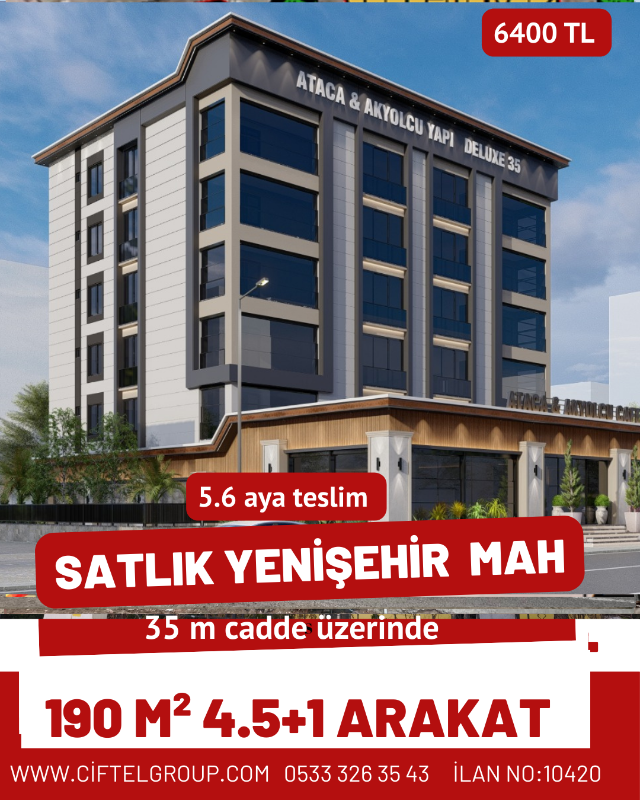 Yenişehir Mahallesi’nde 35 Metre Cadde üzerinde, 4.5+1, arakat, 190 m² daire. Fiyat: 6.500 TL.